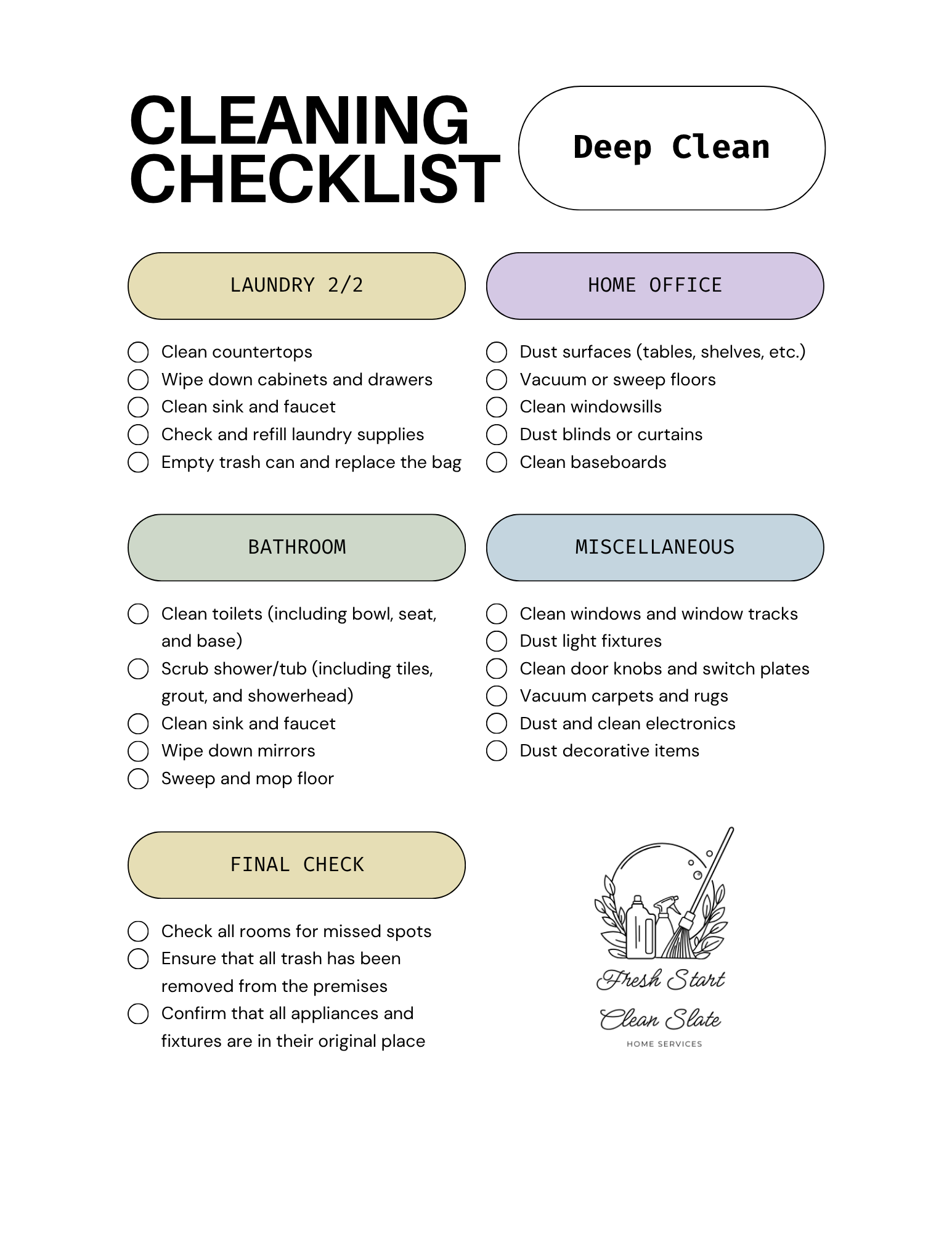Contact us today to book your cleaning service and experience the Fresh Start Clean Slate difference!